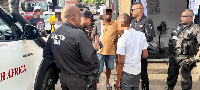 Members of Reaction Unit South Africa at the scene after four armed suspects attempted to rob a schoolboy in the Verulam CBD.