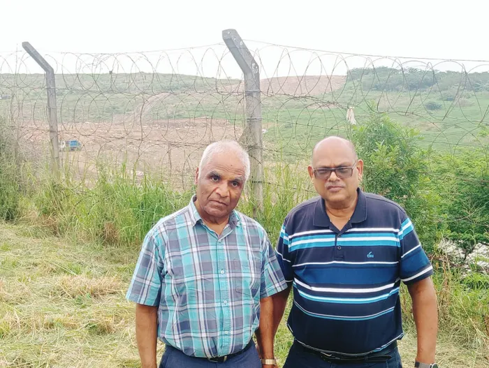 Dasappen Moodley, a resident of the Clare Estate Senior Citizens Association (Cesca) Old Age Home, and Krish Gounden, the chief executive of Cesca, outside the eThekwini Municipality’s Bisasar Road landfill site.