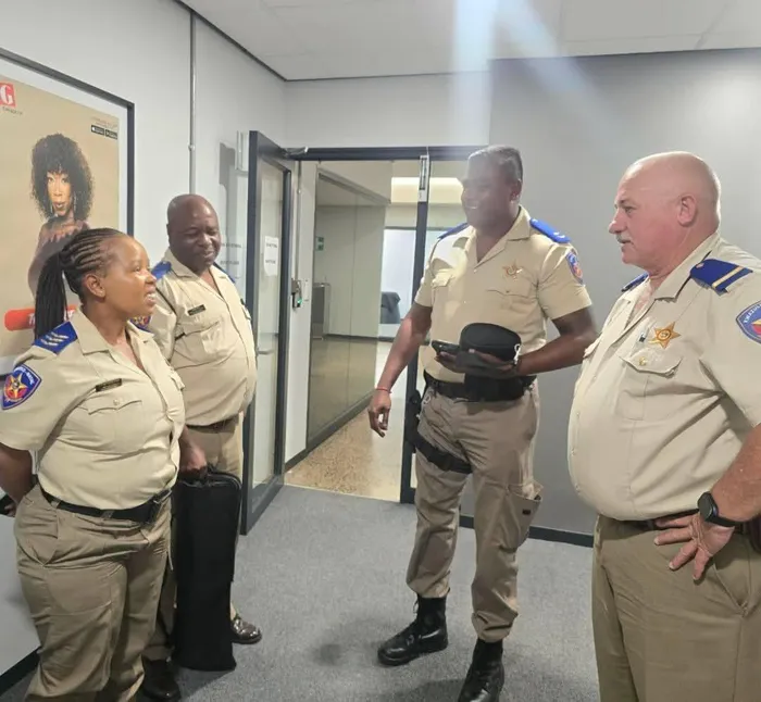 Philile Levis Shangase, Commander of Park Rynie RTI, with fellow RTI members and Shane Simpson, right, the "most feared Acting Provincial Inspector".