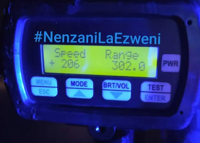 The motorist exceeded the speed limit, clocking 206 km/h in a 120km/h zone, and drove without a number plate to avoid detection. Both violations, said the department, were illegal.