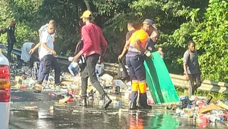 A truck carrying beer lost its load on Watson Highway in Tongaat this morning.