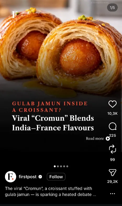 The latest viral food craze is the cromun, a flaky, buttery croissant stuffed with everyone’s beloved gulab jamun.