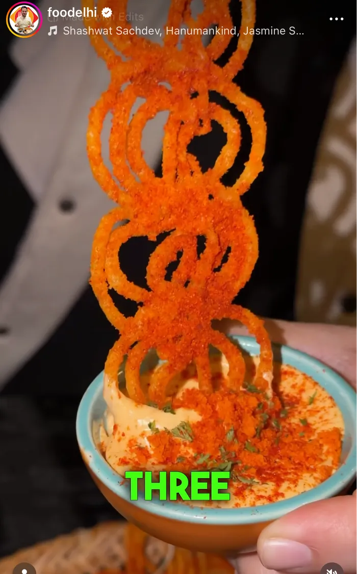 He wrote: Have you ever had a cheesy, spicy jalebi? 🧀🔥Yes, you read that right. This spot in Delhi NCR has flipped the classic dessert on its head and turned it into a crisp, savoury snack instead. Meet the Chilli Cheese Jalebi — made by blending cheddar and mozzarella directly into the batter, fried till perfectly crisp, then dusted generously with a spicy chilli nacho powder.