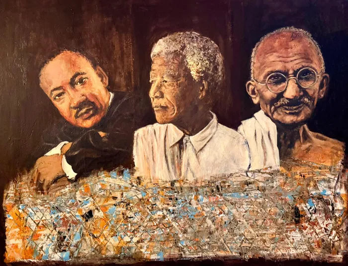 As part of South Africa’s Constitution’s 30th-anniversary celebrations, a painting was commissioned from local artist Aashima Malhotra, with Martin Luther King, Nelson Mandela, and Mahatma Gandhi.