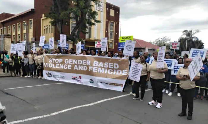 Members of political parties and community members held placard demonstrations outside the courthouse on Monday, chanting for justice.