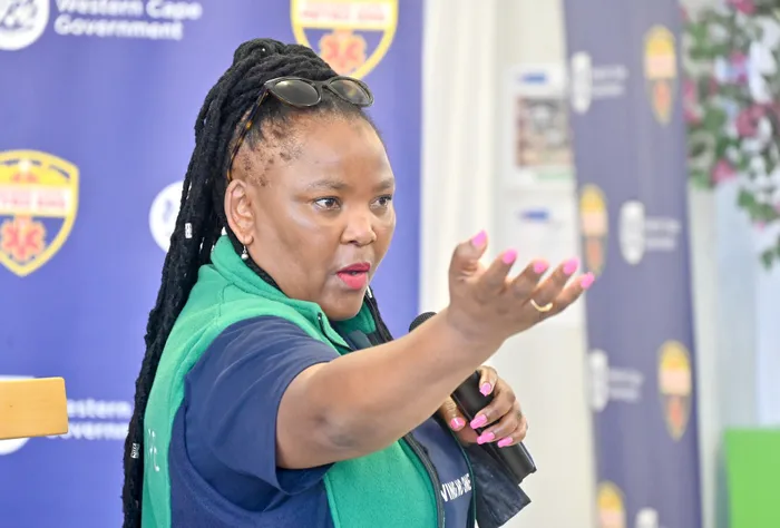 Dr Nomafrench Mbombo holding a mic. Western Cape MEC of Health and Wellness, Dr Nomafrench Mbombo has urged communities to give healthcare workers safe passage amid the taxi violence under way across Cape Town. File Picture: Ayanda Ndamane African News Agency (ANA)