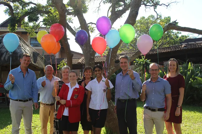 Pictured (from left) are: Mark Charlesworth (Deputy Head of the Senior College), Joe Erasmus (Managing Director), Karen Johnstone (Afrikaans teacher), Danielle Boshoff (top student in the world for physical science and Afrikaans), Jenny van Buuren (Senior College Head), Sashna Govender (top student in South Africa for accounting), Andre Buys (CEO), Ivan Kelly (physical science teacher) and Kelsey Dames (accountingteacher).