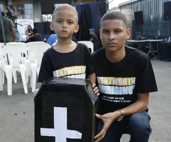 Kale Smith (right) with his brother Kai, after Kale delivered his eulogy at the Wentworth Rise Against Violence campaign.