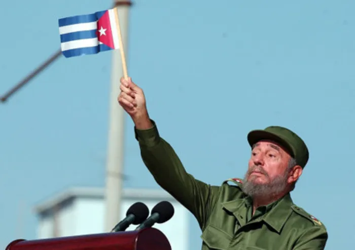 Cuban President Fidel Castro waving the Cuban flag after his speech to thousands of people in front of the US interest office in Havana, Cuba in 2004. File picture: Alejandro Ernesto/EPA Cuban President Fidel Castro waving the Cuban flag after his speech to thousands of people in front of the US interest office in Havana, Cuba in 2004. File picture: Alejandro Ernesto/EPA