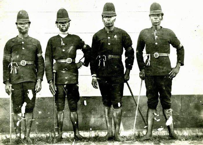 Early "Black Jacks" Municipal Police, Durban, 1900.