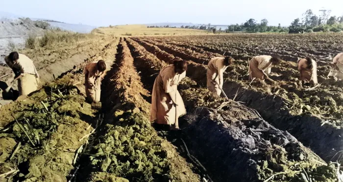 Women workers on a sugar cane plantation in Esperanza, South Coast of colonial Natal, 1903.
