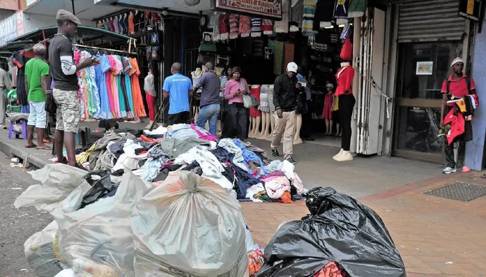 231113: Victoria Street Durban IF YOU grew up in South Africa, you remember: shop assistants standing outside calling to passersbY - "Gena mama! Five rand special!" - pulling foot traffic through the door. This is Victoria Street in Durban