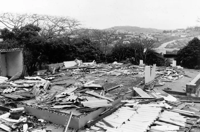 Mahatma Gandhi's original wood and iron home, in Phoenix, razed in political violence in August 1985.