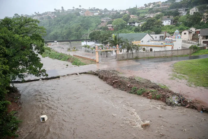 The Umhlatuzana Hindu Temple in the background following the 2022 floods.