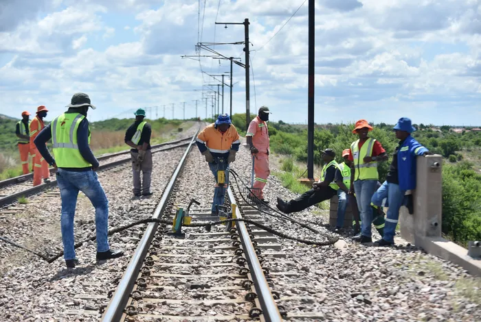 Workers put final touches to the tracks ahead of the resumption of train services in the Mabopane corridor. Only diesel locomotives will be used. Picture: Thobile Mathonsi African News Agency (ANA)