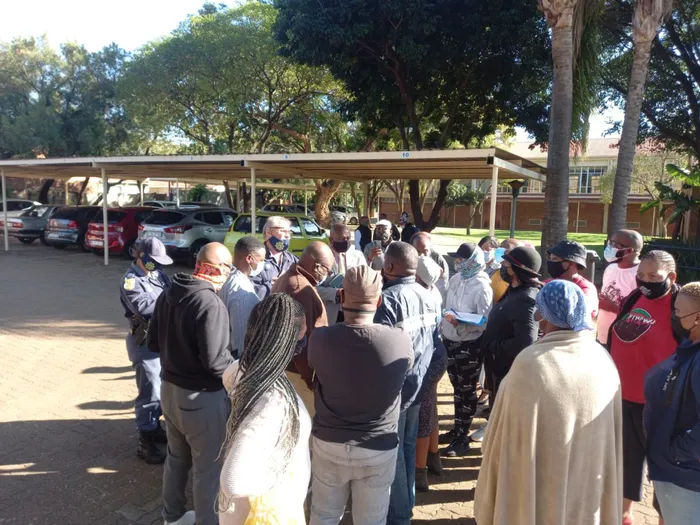 Angry parents outside Laerskool Theresapark. Picture: James Mahlokwane