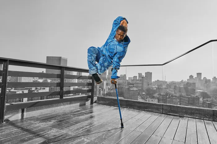 South African amputee dance artist Musa Motha in the newly launched G-Star Raw Elwood. Supplied image.