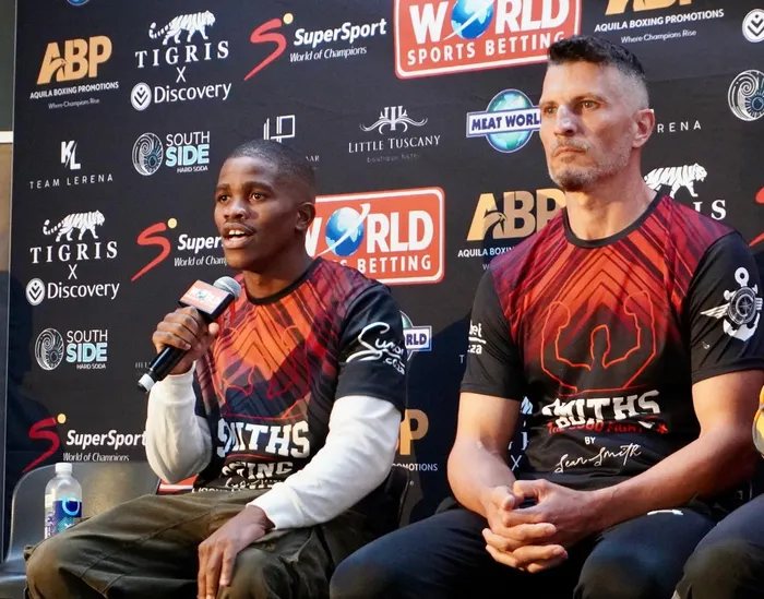 Bantamweight Tiisetso Matikinca (left), undefeated with nine professional fights, aims to uplift his family and achieve world champion status, while praising Aquila Boxing Promotions as his supportive platform, as he prepares for his upcoming fight against Sabelo Cebekhulu at Knockout Chaos 1 in Sandton. Picture: Michael Sherman/IOL