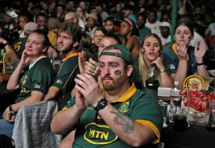 Springboks supporters show different emotions at fan park in Loftus Park during the 2023 Rugby World Cup semi finals match between the Springboks and England. Picture: Oupa Mokoena / Independent Newspapers