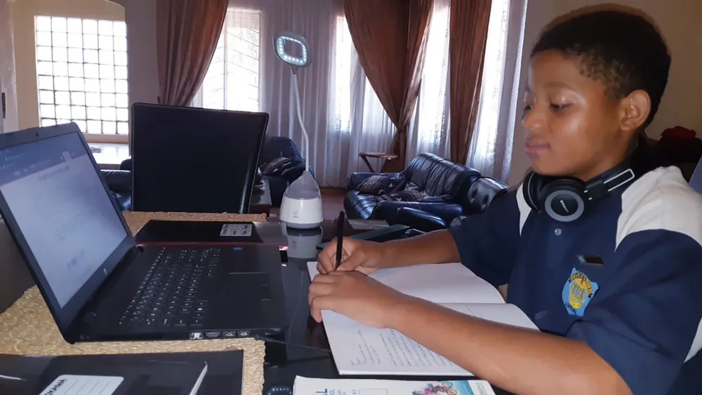 “Botlhale’s school has an e-learning portal so he connects to it and does his schoolwork. The school has modules on the portal and he just has to log in and do his work. If he has a problem, he is able to contact the teacher.