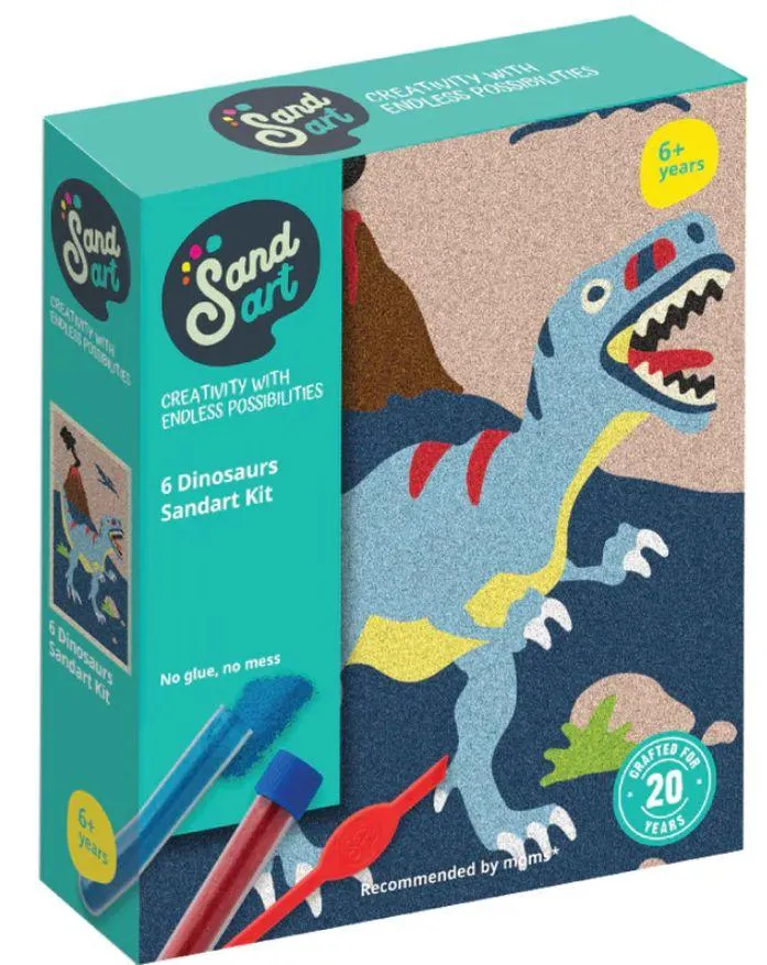 Step back in time and get creative with our SandArt Dinosaur Kit! This exciting craft activity includes six dinosaur-themed adhesive cards along with a set of bright, colourful sand tubes, perfect for kids who love both art and prehistoric creatures. Using the simple peel, pour, and sprinkle method, children can bring their favourite dinosaurs to life in dazzling colours, while developing fine motor skills, focus, andcreativity. Ideal for rainy days, parties, or as a gift for dino-loving kids, this kit combines hands-on play with artistic expression—leaving them with colourful creations they’ll be proudto show off.