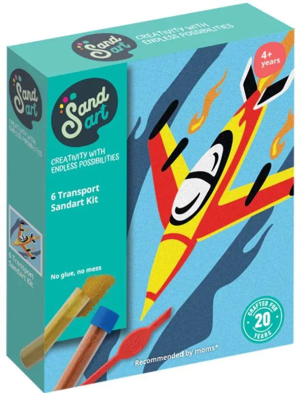 Rev up creativity with our SandArt Transport Kit! This exciting craft set includes six adhesive cards featuring cars, trucks, planes, and more, paired with bright coloureds and tubes to bring every vehicle to life.Using the simple peel, pour, and sprinkle method, kids can design their favourite modes of transport in vibrant colours while developing fine motor skills, focus, and artistic confidence. Perfect for gifts, rainy days, or classroom activities, this kit combines hands-on fun with creativity, leaving children with transport artworks they’ll love to display.